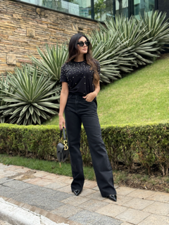 T-SHIRT BORDADO COM PEDRARIAS NA FRENTE.